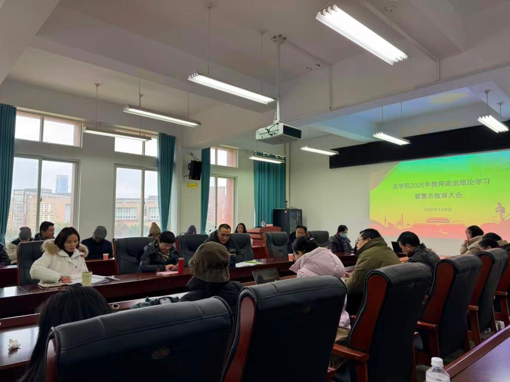 为进一步夯实教师思想根基、强化师德师风建设,2026年1月8日下午,法学院召开教师政治理论学习暨警示教育大会。会议由学院党委书记主持,全院教师参会。