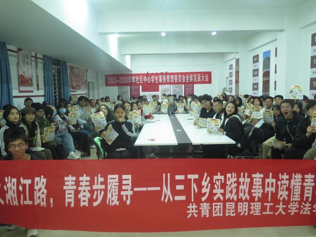为深入学习贯彻党的二十届四中全会精神,进一步深化青年学生思想政治引领,激励广大学子在社会实践的熔炉中锤炼本领、在红色教育的熏陶中坚定信仰,法学院团委于11月17日在憬园6122活动室举办青卓班——“星火湘江路 青春步履寻:从三下乡实践故事中读懂青年爱国担当”宣讲会。学院团委书记李晴出席,青卓班成员、学院入党积极分子、入团积极分子等共计80余名学生共同参与。