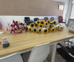 前期准备的鲜花与活动现场