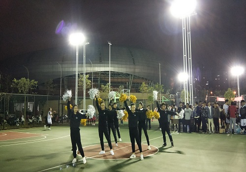 赛前队员们积极热身,氛围紧张。法学院啦啦队成员在鼓声中亮相,进行赛前热场。啦啦队员的鼓励给了他们很大的动力,让他们在比赛中奋力拼搏。不管是球队落后或是领先,亢奋抑或失落,啦啦队队员们不变的热情始终伴随着球队,让他们在球场上尽情地释放青春。