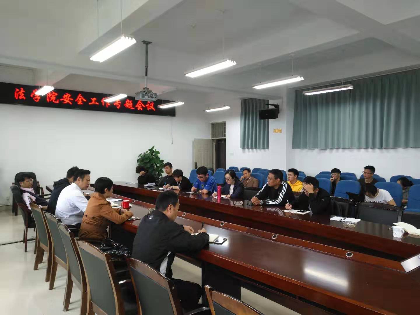2019年9月10日上午,法学院组织召开了2019年安全工作专题会议。此次会议旨在及时传达学校安全工作会议精神,对学院当前安全工作进行全面梳理,积极做好应对方案和措施。